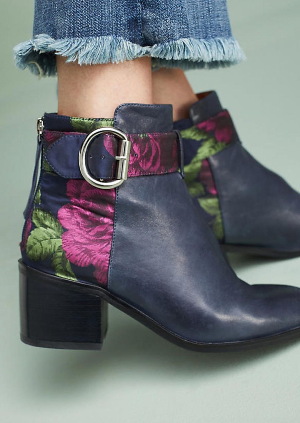 2. Talk about a boot throwback. The Jeffrey Campbell Regan Floral Booties ($178) mix vintage florals with the emerging buckle trend.