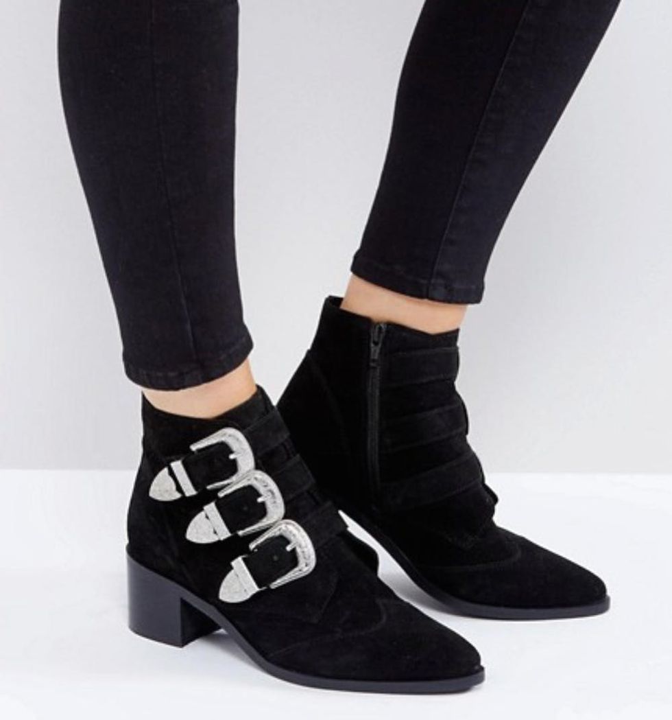 6.ASOS RELIEVE Suede Buckle Ankle Boots ($87) are our new favorite mock cowboy boots. Details like the buckles, suede, and pointed toe give them a Western look, while the silhouette adds a modern twist.