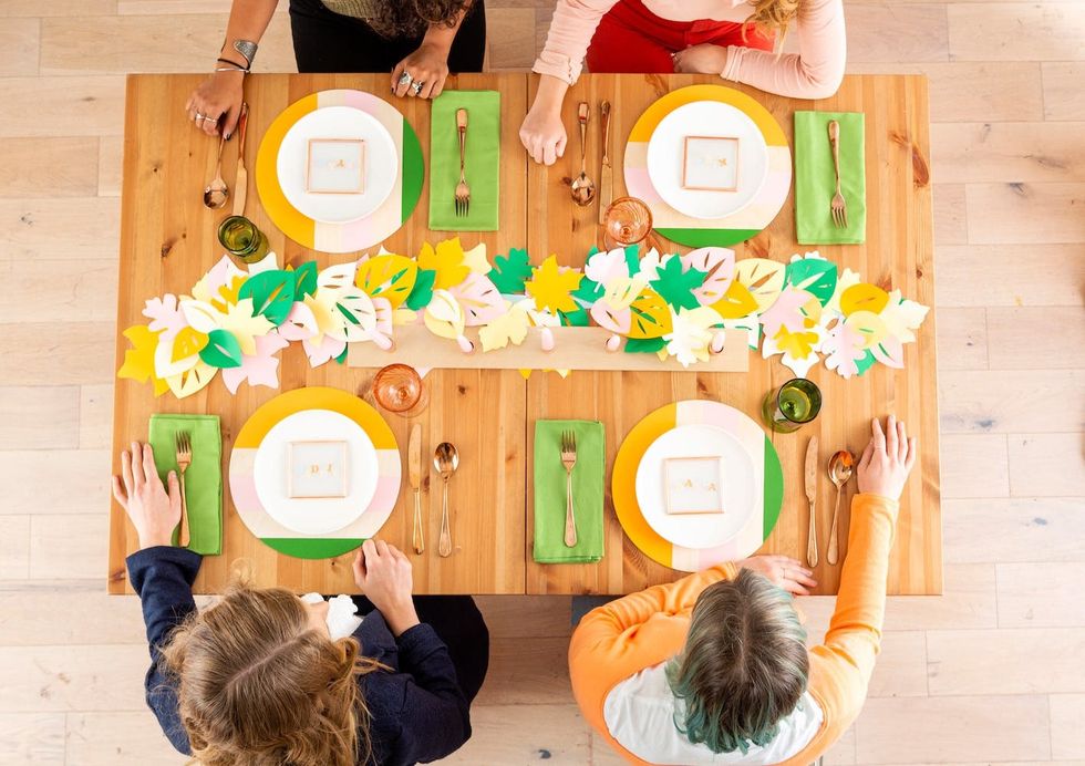 DIY Paper Leaf Centerpiece Instructions: Spruce up your table with florals that add a special decorative touch. Follow this paper leaf centerpiece runner DIY to make them, and switch up the color palette to match your decor. The best part? You can reuse your creation event after event.
