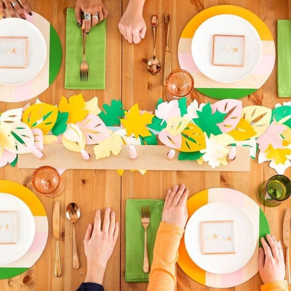 DIY Paper Leaf Centerpiece Instructions: Spruce up your table with florals that add a special decorative touch. Follow this paper leaf centerpiece runner DIY to make them, and switch up the color palette to match your decor. The best part? You can reuse your creation event after event.