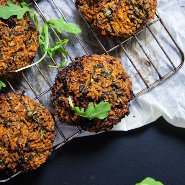 Made into little cakes, bulgur falafel is crispy on the outside and tender within. Add it to salads, eat as a snack, or turn into a wrap, as in this recipe. (via Live Eat Learn)