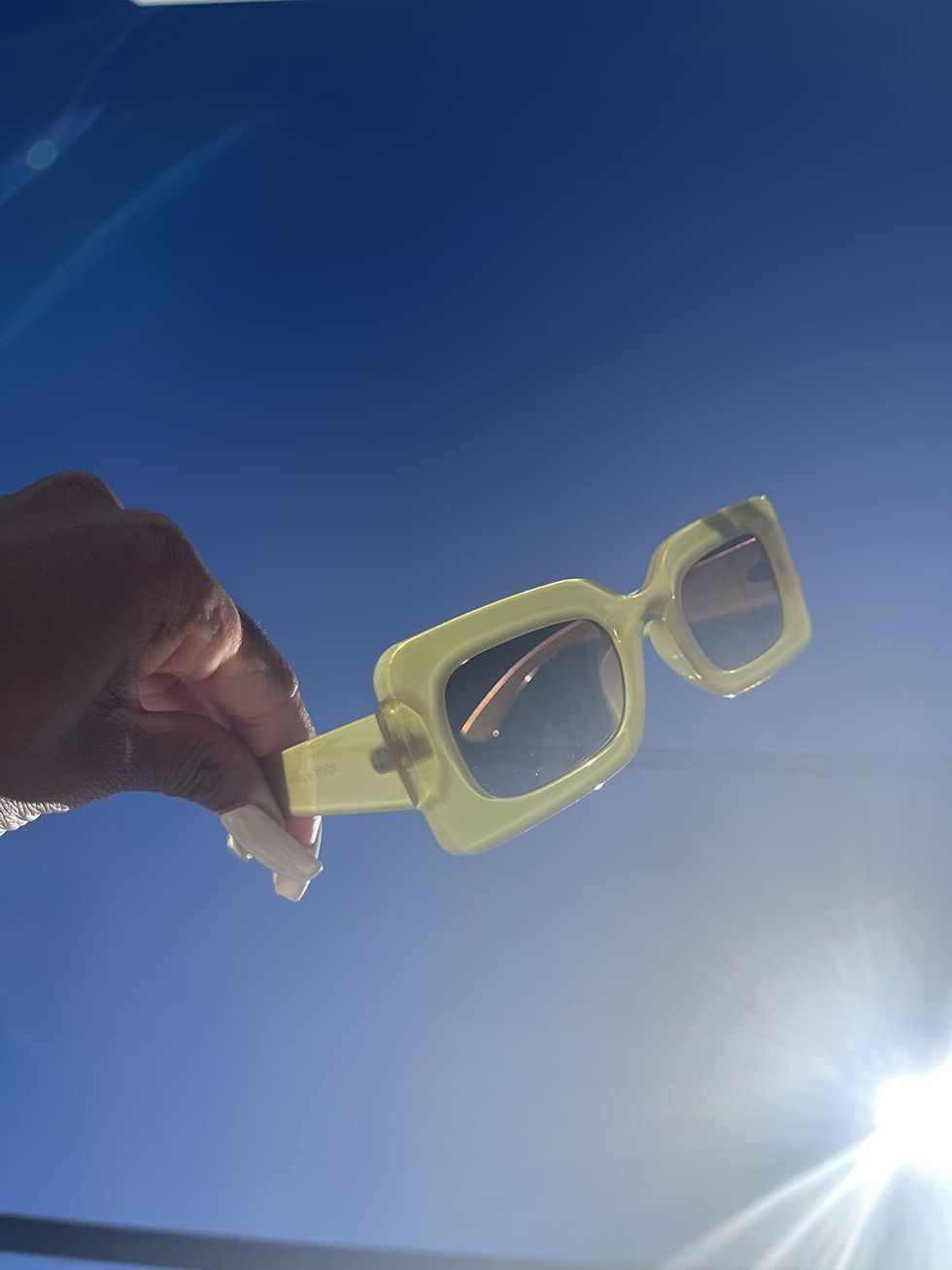 Bold in the coolest way, these yellow retro sunglasses bring instant personality to any outfit. The slim, angular shape gives off throwback energy, while the soft color keeps things approachable and light. They’re the kind of sunglasses you wear when your outfit is simple, but your energy is all main character.