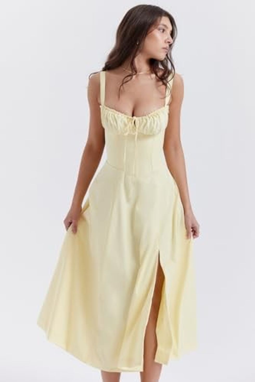 Butter yellow is having a moment, and honestly, we saw it coming. Soft, golden, and just the right amount of nostalgic, this shade is popping up everywhere from runways to brunch outfits, and it’s quickly becoming the color of summer 2025. It’s cheerful without trying too hard, warm without going full neon, and somehow looks good on literally everyone. We rounded up the fashion finds that bring the trend to life in the sweetest way. Think flowy dresses, sunny accessories, and soft knits that feel like golden hour in clothing form. Whether you’re wearing it head to toe or just adding a pop, butter yellow is here to brighten your whole wardrobe and your whole vibe.