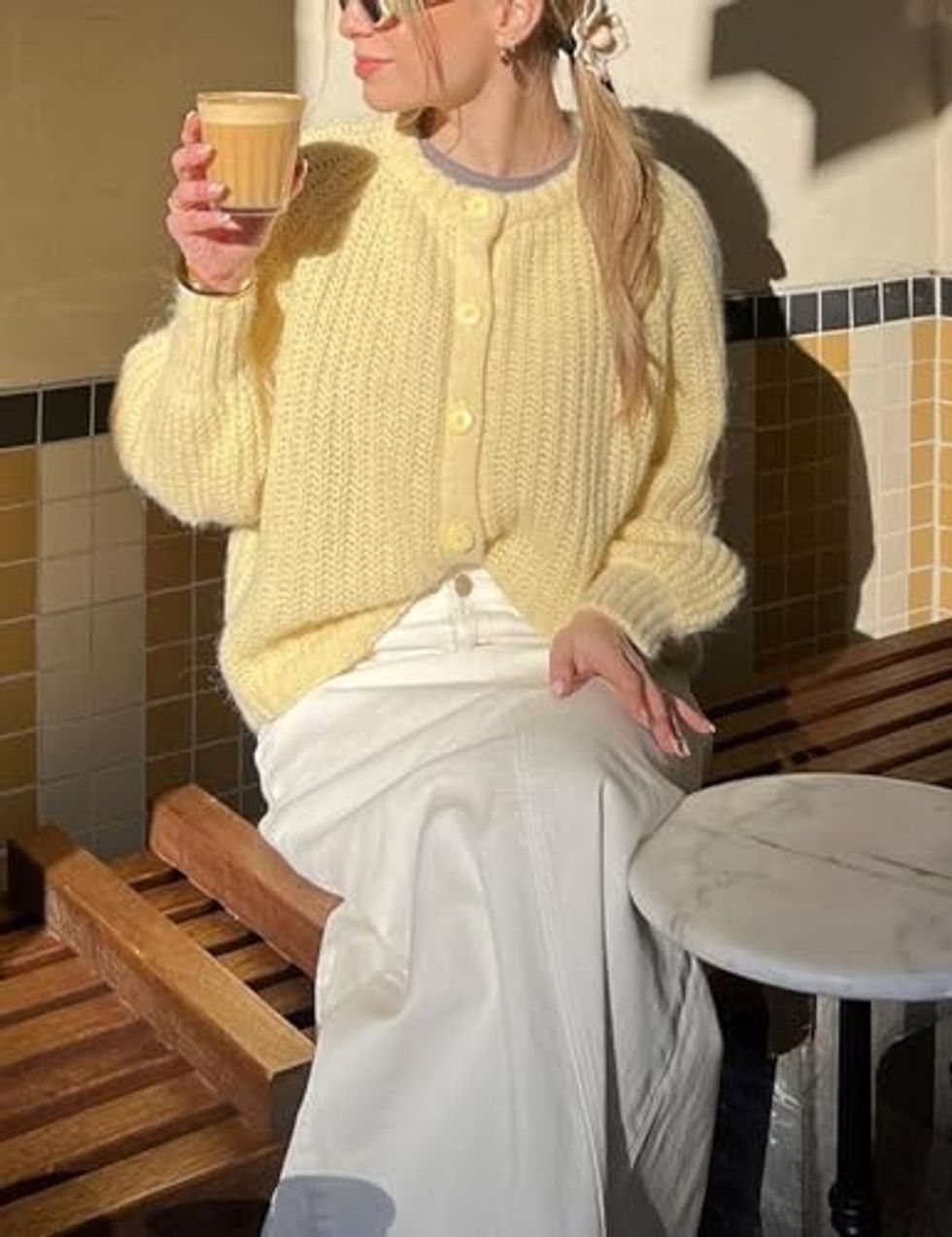 See it on AmazonCloudy Mornings Call for a Butter Cropped Cardigan and Tea in Hand