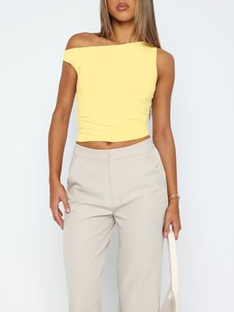 This ruched butter-yellow tank top is all about showing off soft curves and sun-kissed shoulders. The fabric hugs without clinging, making it easy to pair with everything from flowy skirts to denim shorts. It’s breathable, flattering, and feels like sunshine against your skin.