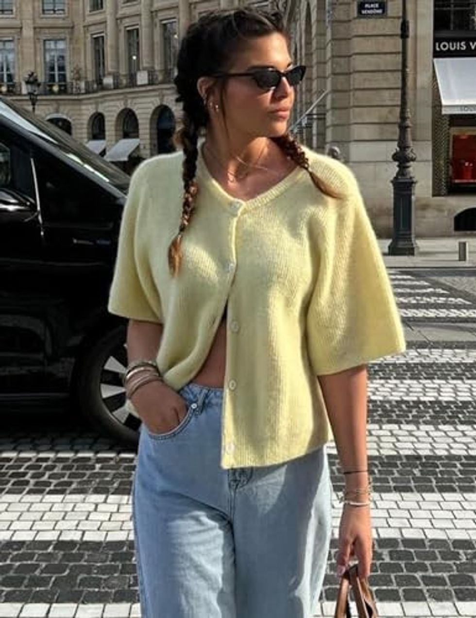 On breezy evenings or cloudy mornings, this butter cropped cardigan wraps you in comfort without weighing you down. The pastel butter hue is calm and cozy, perfect for layering over sundresses or pairing with high-rise denim. Lightweight and soft to the touch, it’s the piece you reach for when you want to feel a little more put together without trying too hard.