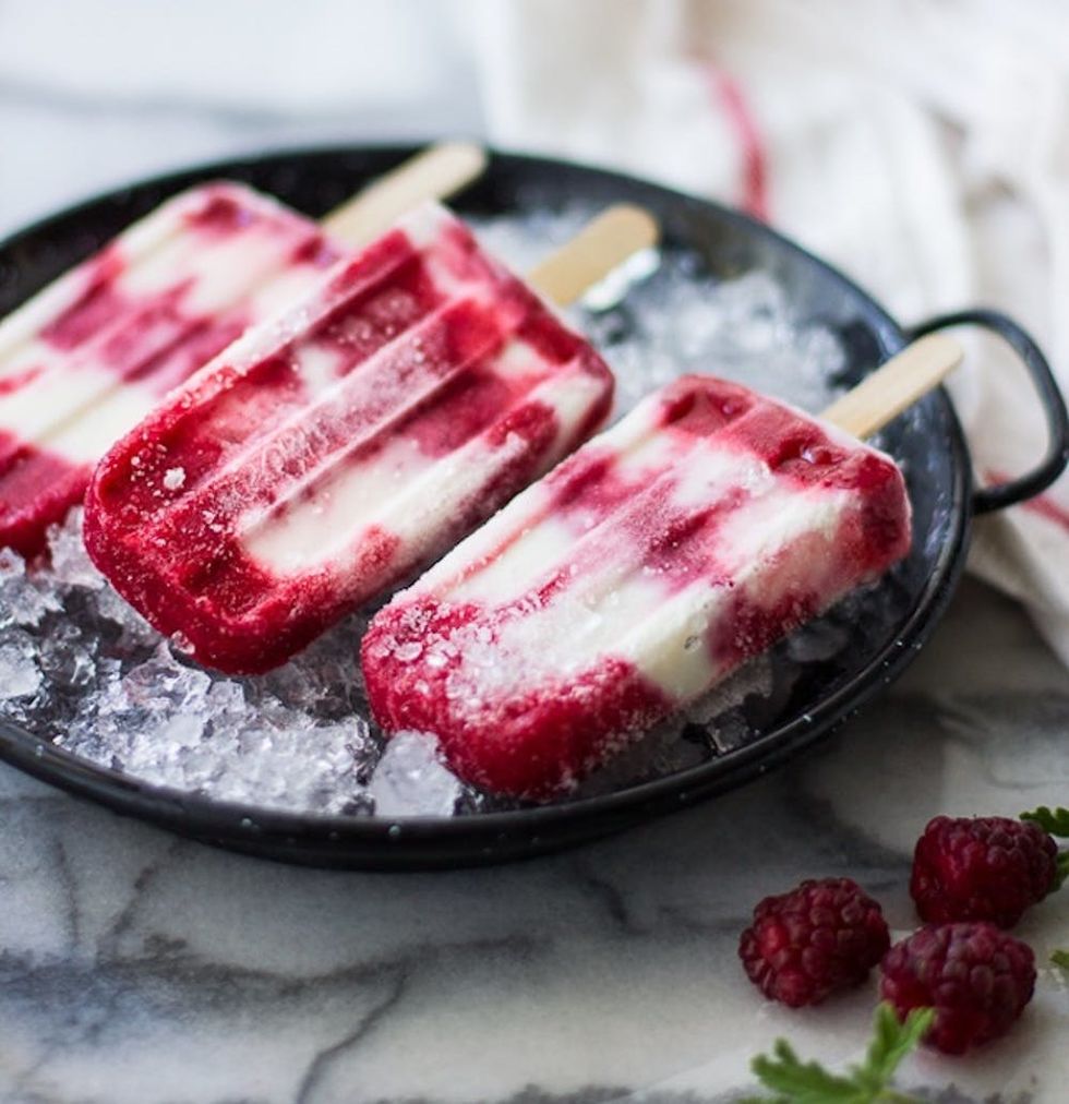 These beauties are made by alternating layers of the fresh berry mixture and creamy buttermilk in the popsicle mold. (via The Bojon Gourmet)