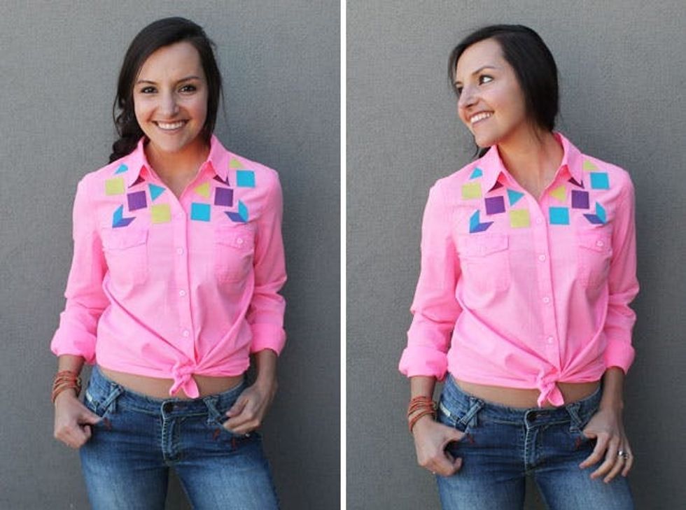 Earlier this week we showed you how to ramp up your stockpile of chambray shirts. Well now it’s time to get into it with a trio of button downs! These methods would also work well for white or blue button down shirts, but we couldn’t resist a spring mix of hot pink, pastel yellow, and light green.