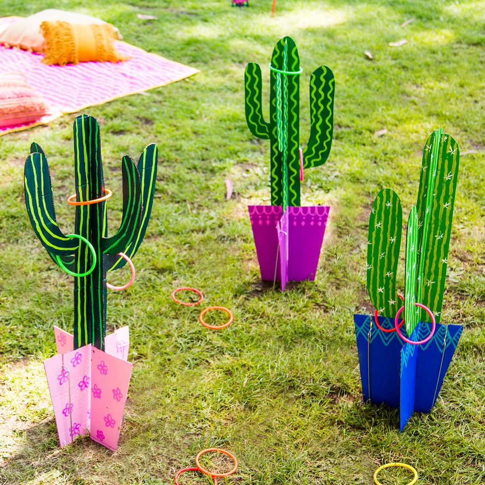 All you need is cardboard, paint and a utility knife to make your very own cactus ring toss game.