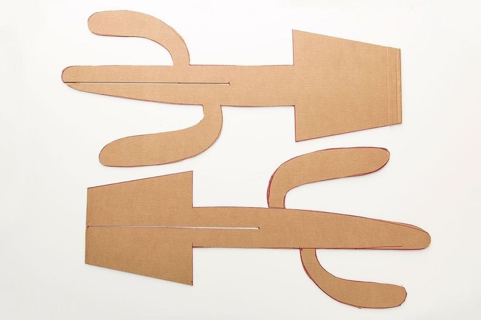 Grab a large piece of cardboard and draw a simple potted cactus. (Make sure the arms are thinner than the rings you'll be tossing!) Cut it out with a utility knife. Cut a long, thin strip from the bottom to the middle of the cactus. Then trace the cactus onto a new piece of cardboard and cut it out. On this second cactus, cut out a long, thin strip from the top to the middle.