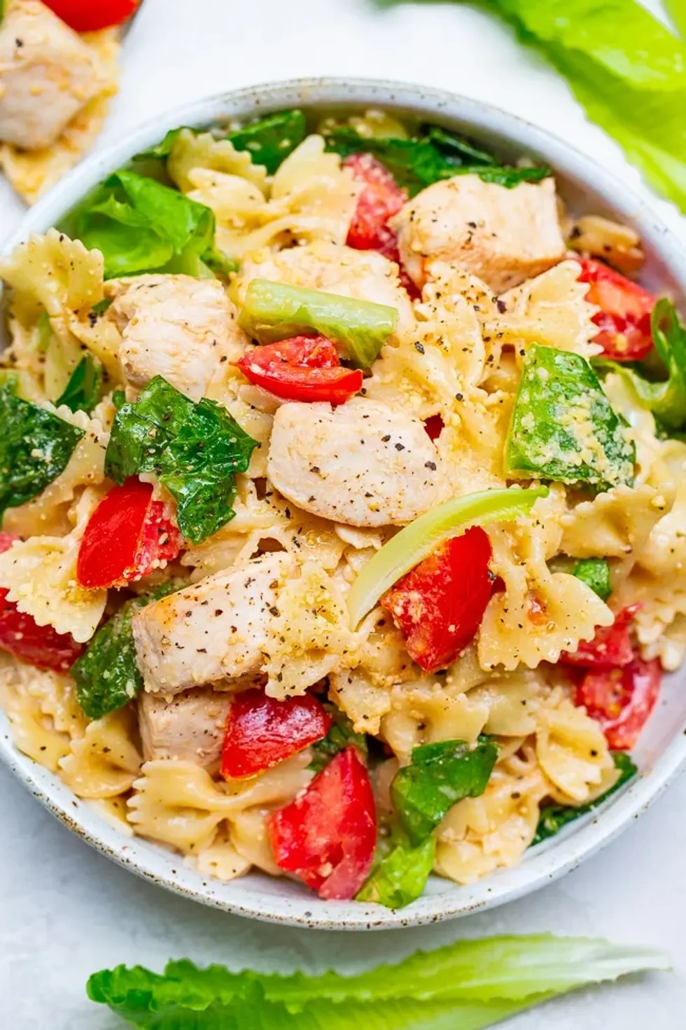 What’s the foolproof way to make any meal better? Add pasta. Reach for pasta shapes such as elbow, farfalle, gemelli, or cavatappi (just check out this pasta shapes guide for more insight). This chicken caesar pasta salad by Averie Cooks utilizes farfalle, while this tortellini caesar salad adds a cheesy twist by Two Peas & Their Pod.