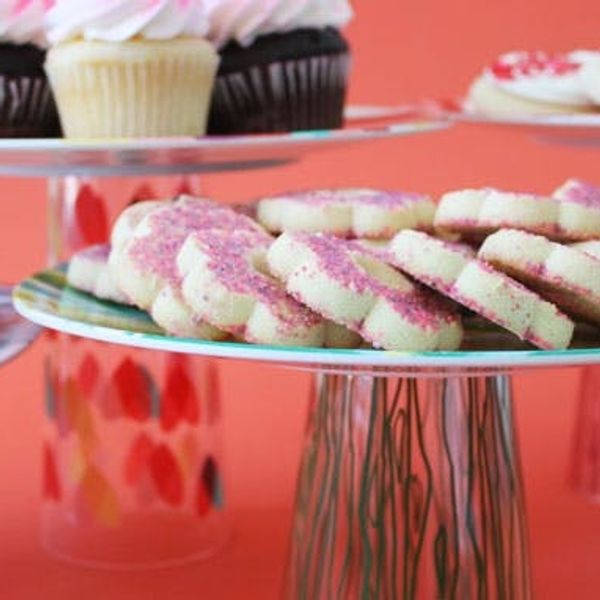 How to Turn Plates + Glasses into Colorful Cake Stands