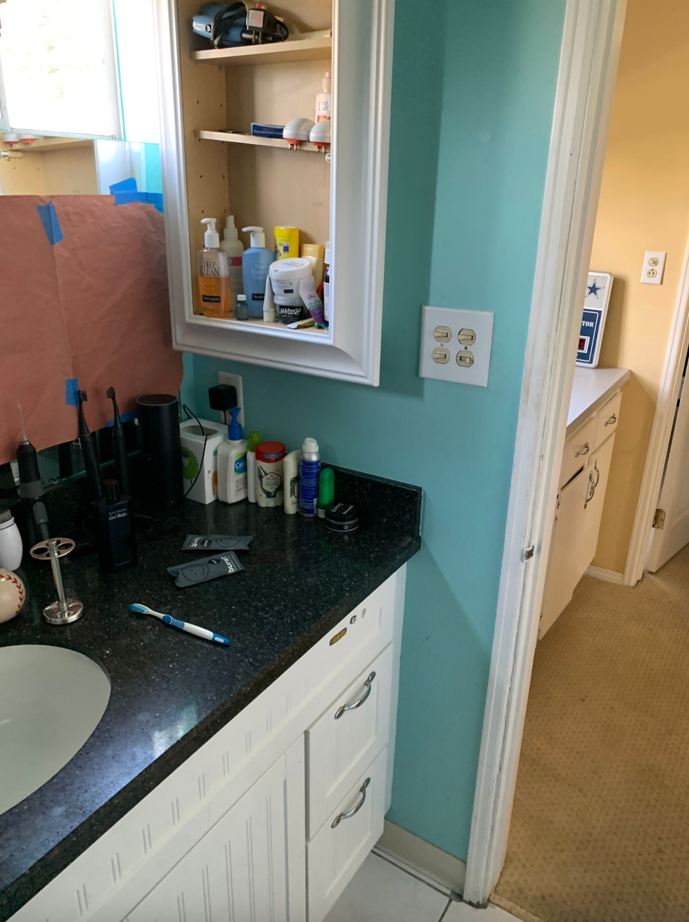 And repeated the color in the bathroom, which was old, cramped and dated.
