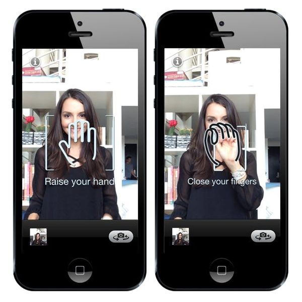 Prop your camera on a table, or if you have a fancy iPhone tripod, set it up in that. Once you have the app open, follow the on-screen prompts. First raise your hand; then pinch your fingers together. This signals to the app that you’re ready to go.