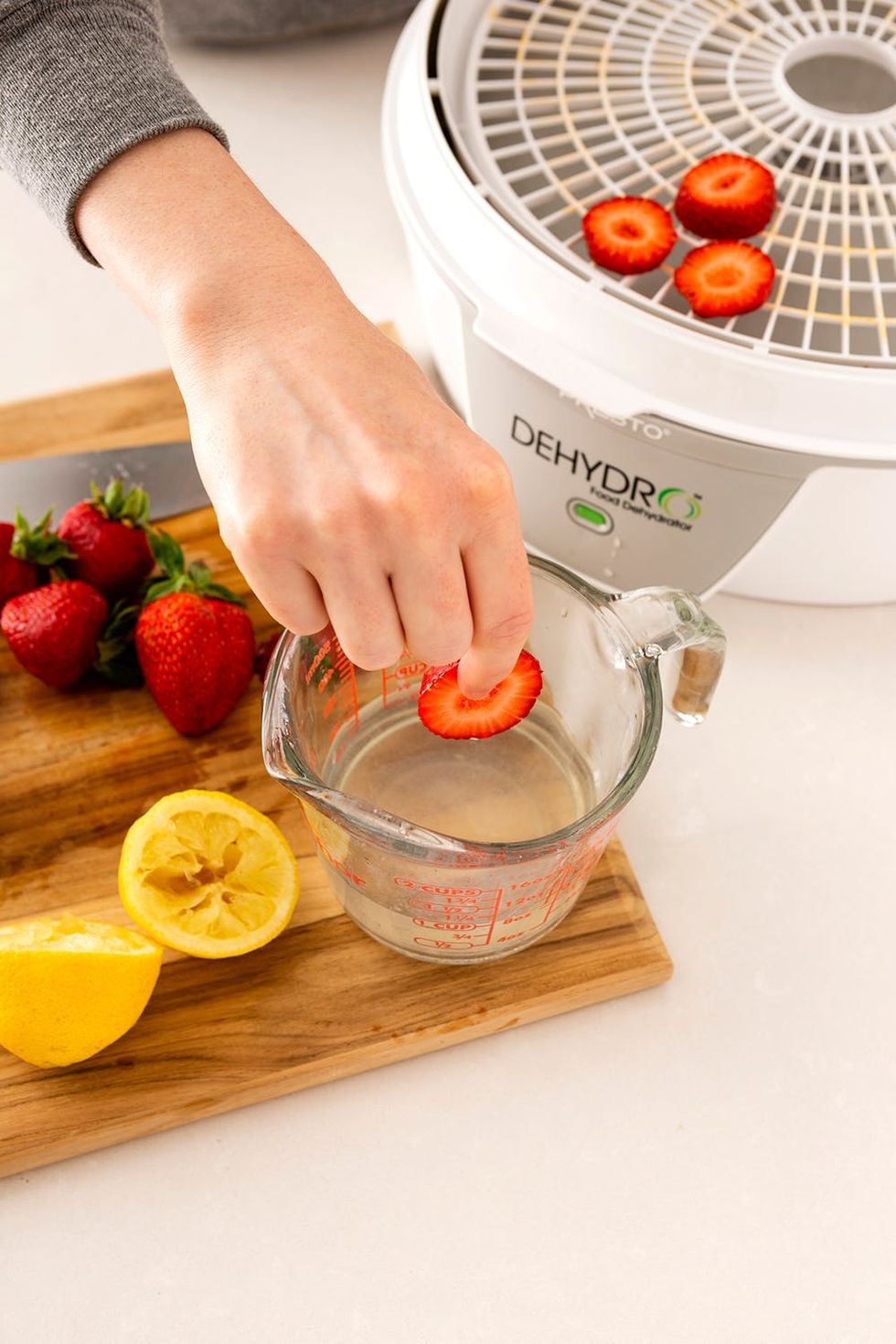 - Strawberries: 12 hours (1 pound yields 1 cup dried)