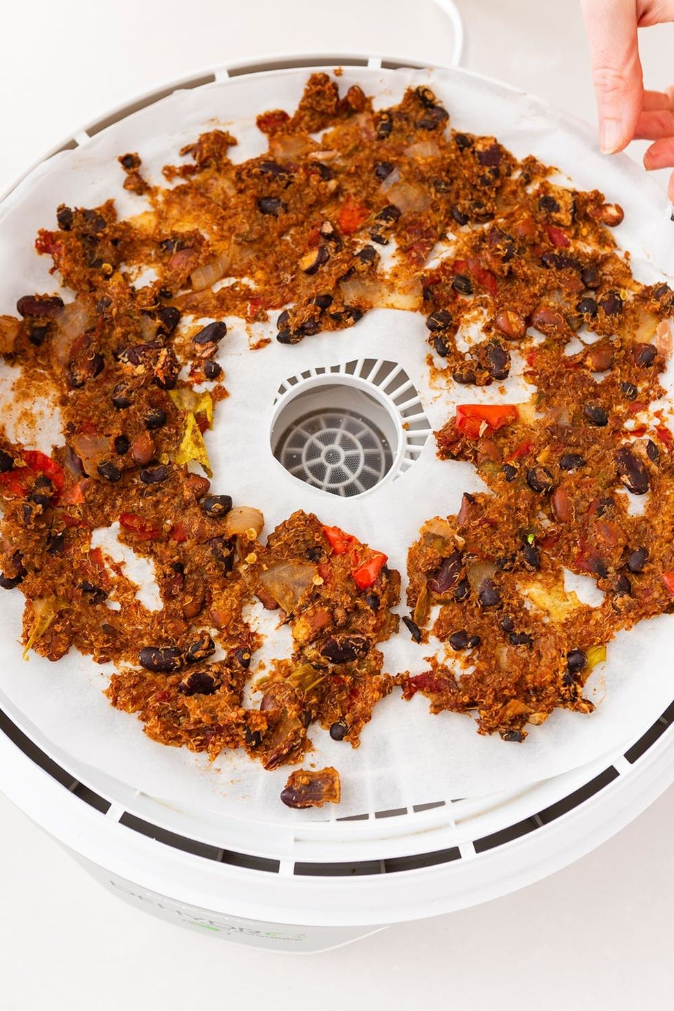 Chili and stews dehydrate well… as long as there’s not a lot of fat in the recipe. (Fat will drip onto the bottom of your dehydrator, plus dehydrated foods high in fat can turn rancid quickly.) This is why we opted to make a protein-rich quinoa and bean chili in a pressure cooker to thoroughly cook all the ingredients without . We recommend packing some nutritional yeast and ghee to stir into the mix once it has rehydrated for cheesy flavor, B vitamins, and healthy fat. Trust us — those few add-ins are so worth it.