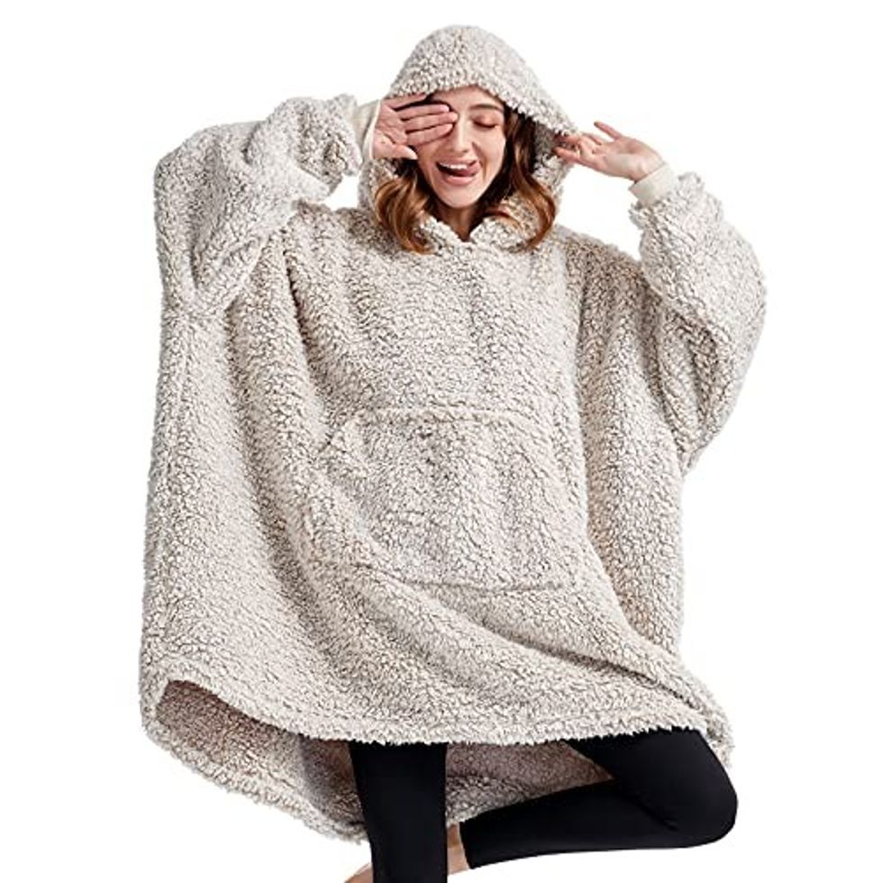It might sound silly, but wearable blankets are often too hot. This sherpa hoodie gives the coziness of a wearable blanket, a ton of style, and plenty of breathing room to prevent overheating.