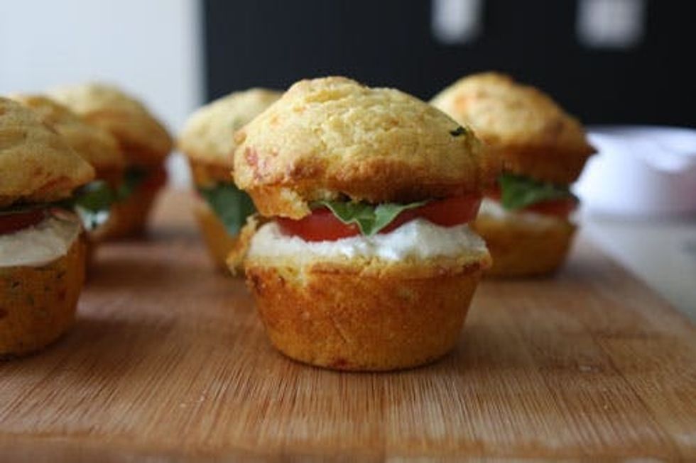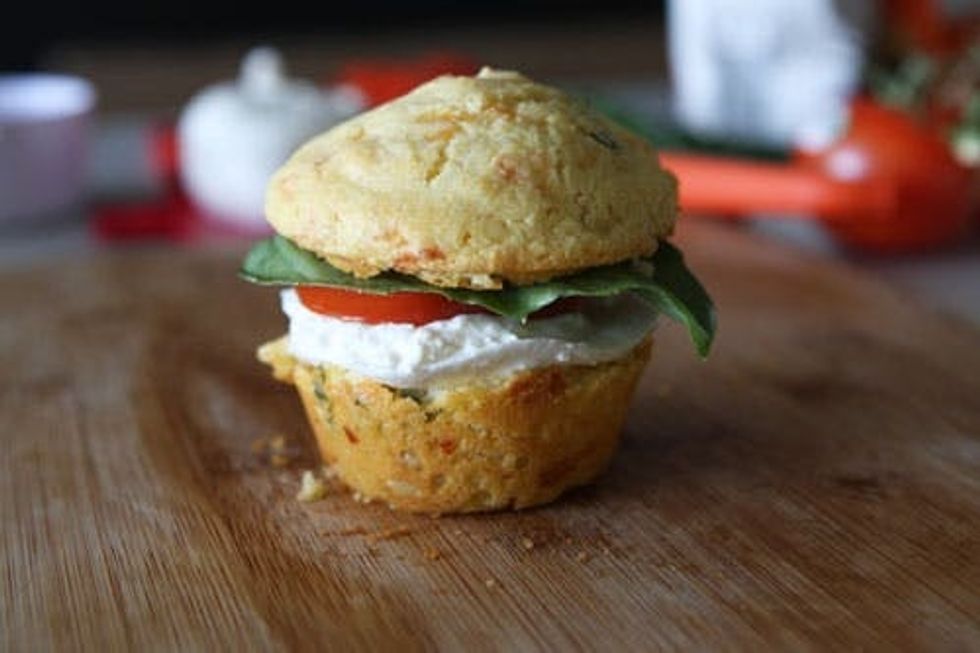 Tomato, basil and mozzarella. Let me count the ways. This culinarily powerful trio comes in the form of salads, sandwiches, and pasta, oh my. And, today, these three delightful ingredients are proud to make their delicious debut in a Brit kitchen concoction: the Caprese Corn Muffin Sandwich! Great for an hors d'oeuvres, brunch party or quick snack, we recommend making a meal of it by serving one darling muffin on a bed of fresh arugula.