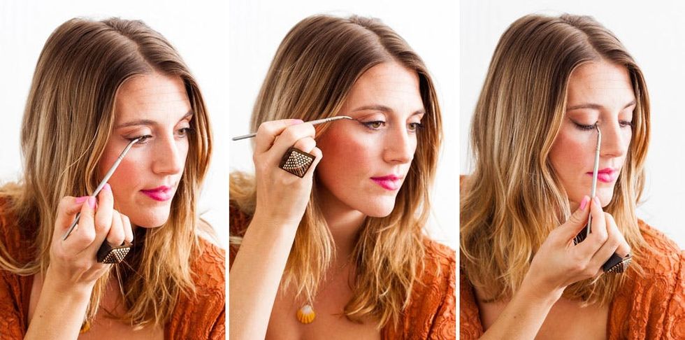 1. As with each look, your guide line is from the outer corner of your eye to the outer tip of your eyebrow.