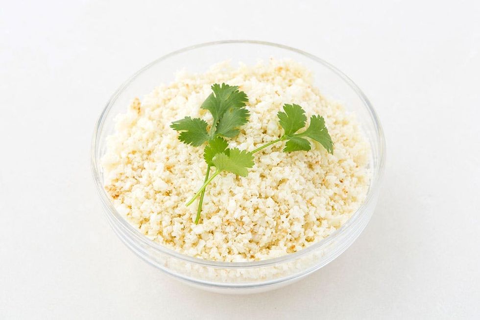 Chop florets and place them in your food processor. Pulse the cauliflower until it resembles rice. Don’t over do it or you’ll wind up with cauliflower mashed potatoes.