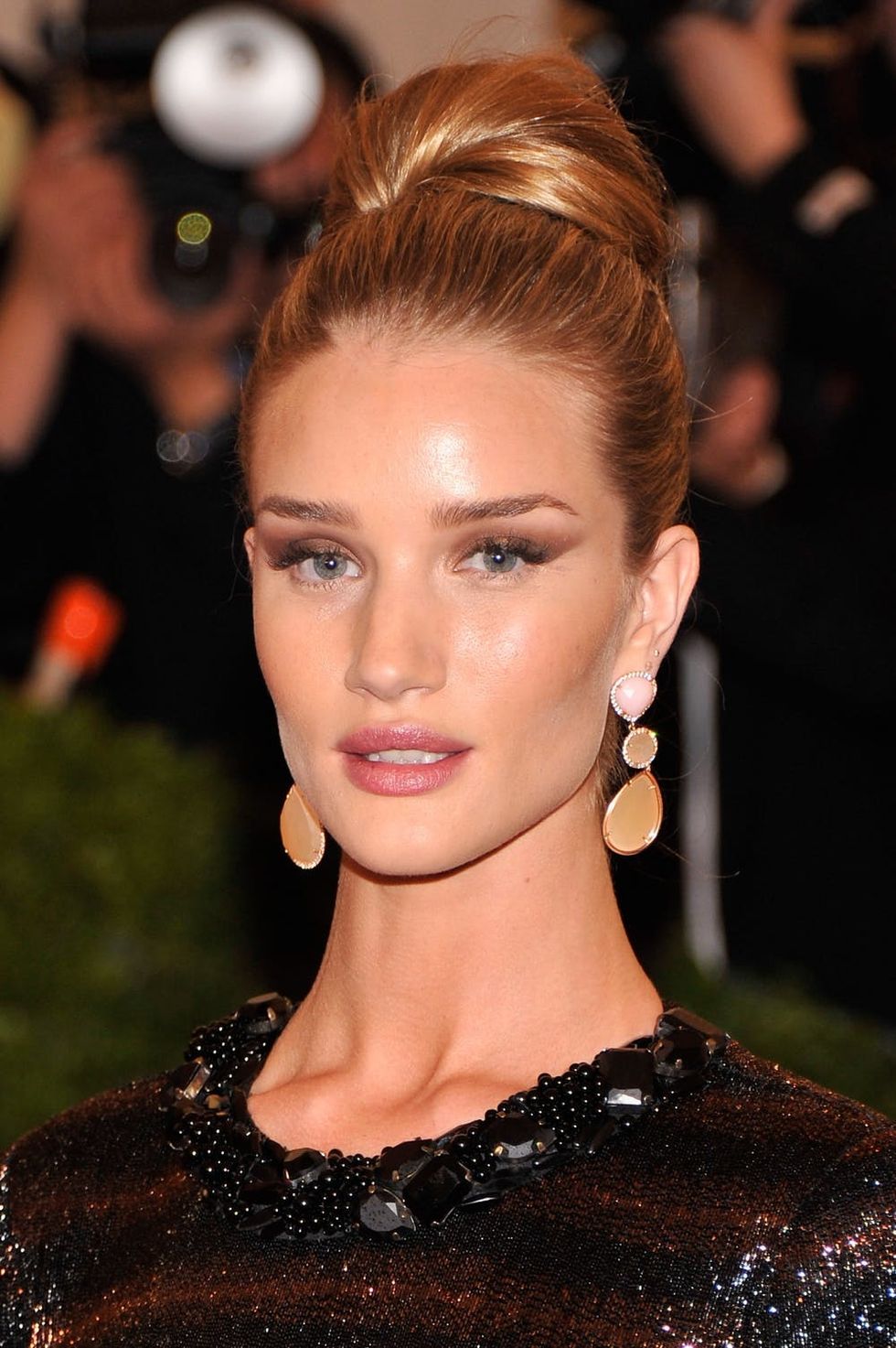 If you’re of the thought process that the bigger the bun, the better, look no further than Rosie Huntington-Whiteley. While wearable for all face shapes, this particular bun is especially flattering on oval face shapes, as, according to celebrity stylist Jonathan Colombini, the wide knot brings attention to the jawline and away from the length of the face. (Photo via Stephen Lovekin/ Getty)