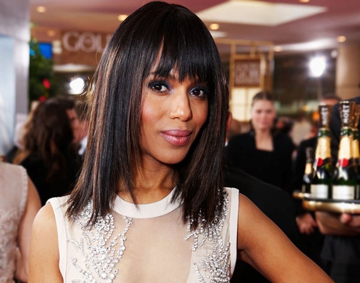 17. Chic and Shiny: Kerry Washington is a hair ninja. One day we’ll see her with big blunt bags, the next day her hair will be totally swept back in a stunning updo. But probably our favorite look is her sleek, shiny piece-y bangs. (via The Daily Beast)