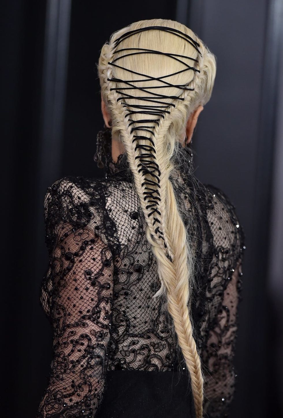 It was the braid that broke the internet at this year’s Grammys, so obviously you need to cop it this season. “The contrast between Gaga’s hair color and the black corset-like threading makes this look even edgier,” says Heaps, but to re-create it you’re going to need a pro (or your BFF) for an extra hand. “For a simpler version (that still has wow factor), try weaving thin black ribbons into double fishtails for a signature style that’s all your own, and seal the look with BioSilk Silk Therapy Finishing Spray Firm Hold ($20) for staying power with shine,” she adds. (Photo via Axelle/Bauer-Griffin/FilmMagic)