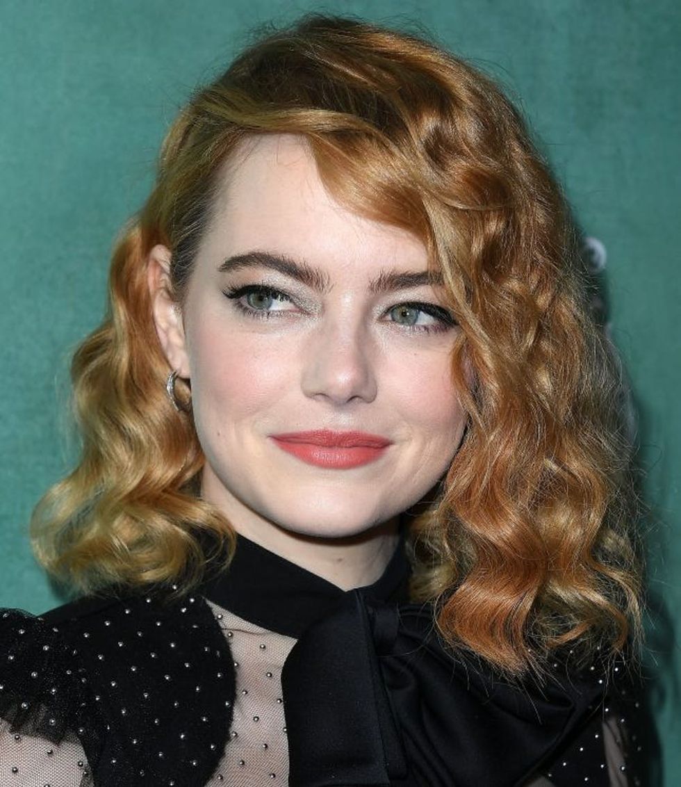 Stone debuted a vintage-meets-vixen round of ringlets in 2018. (Photo via Steve Granitz/WireImage/Getty)