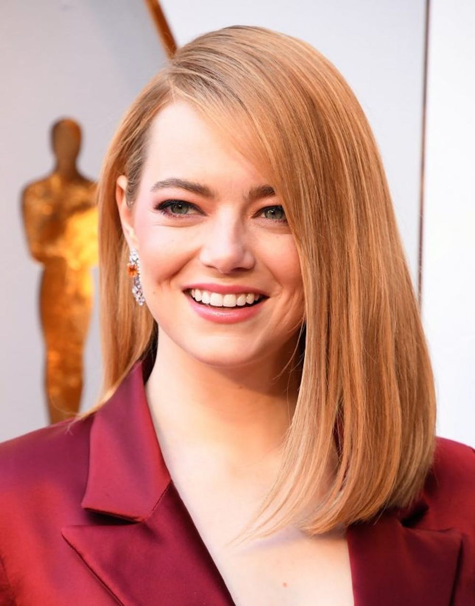 Two days later at the Academy Awards, the Battle of the Sexes star proved that one lob can go a long way. Her sleek side-parted ‘do elevated the sophisticated look of her unexpected pantsuit. (Photos via Steve Granitz/Getty)