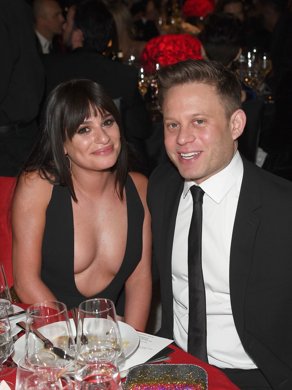 Lea Michele and Zandy Reich: The Glee alum took to Instagram on April 28 to announce her engagement to AYR clothing president Zandy Reich. Along with a simple caption saying, "Yes," she posted a pic of her stunning radiant-cut four-carat ring, which was designed by Reich with Leor Yerushalmi and The Jewelers of Las Vegas. (Photo via Venturelli/Getty Images for Bulgari)