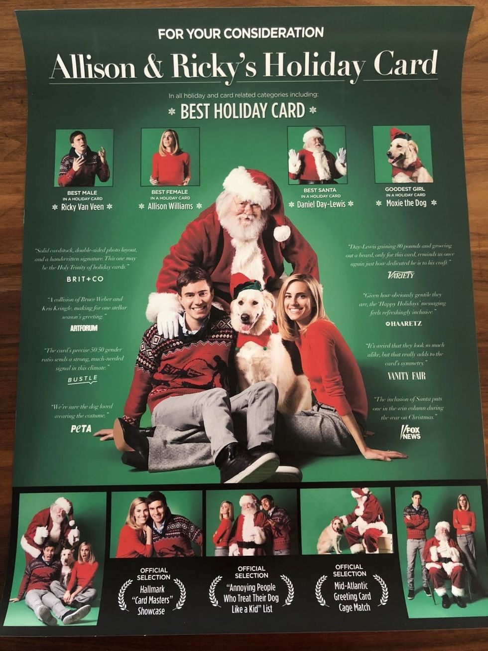 3. Allison WIlliams: Williams’ Christmas card is so good, it’s up for “Best Holiday Card,” with reviews from everyone PETA to yes, even Brit + Co, which was included as follows: “Solid cardstock, double-sided photo layout, and a handwritten signature. This one may be the Holy Trinity of Christmas cards.”