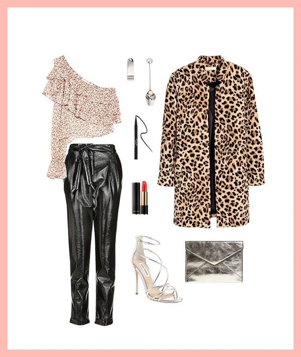 For an upcoming GNO or date night with bae, look to these sass-packed vinyl pants to turn up the heat. While the high waist offers extra coverage, it also provides the perfect opportunity to flash a little shoulder a la a flirty ruffle-trimmed top. Mismatched earrings, quicksilver stilettos, and a metallic envelope clutch ground the getup in after-dark territory. The only thing missing? A swipe of red lipstick and a sleek ‘do.