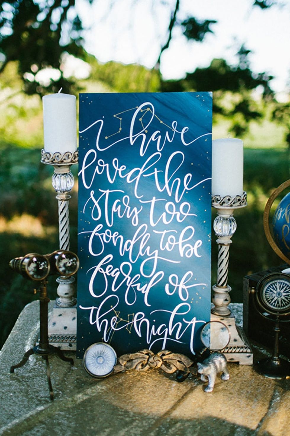3. Starry Night Sign: Spruce up your welcome table with a sign that plays into the theme. There’s just something about displaying the perfect quote that will never get old. (via Dawn Photo / Ruffled Blog