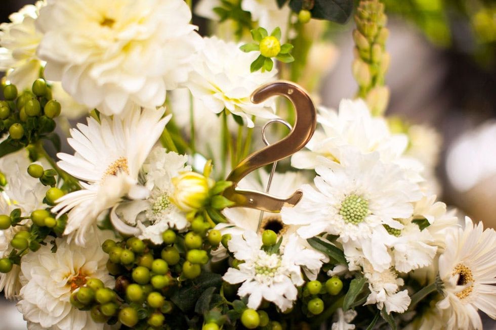 Onto the last piece of the puzzle. To create table numbers, we simply glued brass house numbers onto metal kabob skewers. So simple!