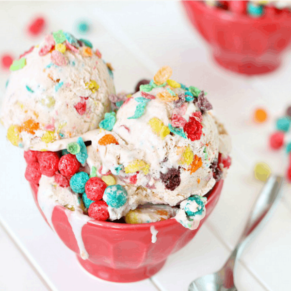 This colorful recipe takes your fave fruity cereals and churns them into a frozen treat that *screams* Saturday morning childhood bliss. (via 1 Fine Cookie)