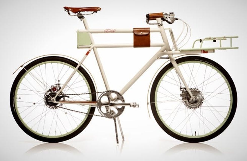 There’s a motor on its front wheel and batteries stored inside the frame, making it look like a regular city commuter bike rather than a bulky electric bike.