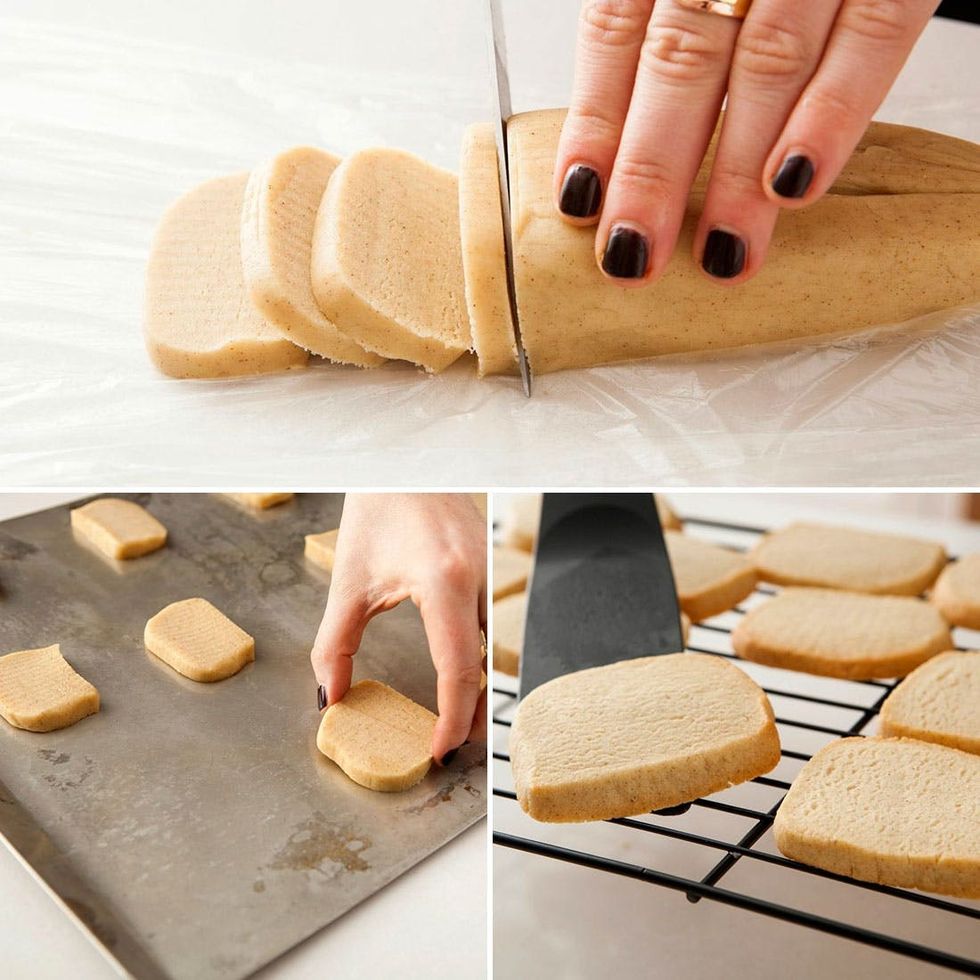 4. Slice the log into 1/4-inch thick cookie slices. Bake for 10-12 minutes, or until golden brown. Enjoy!