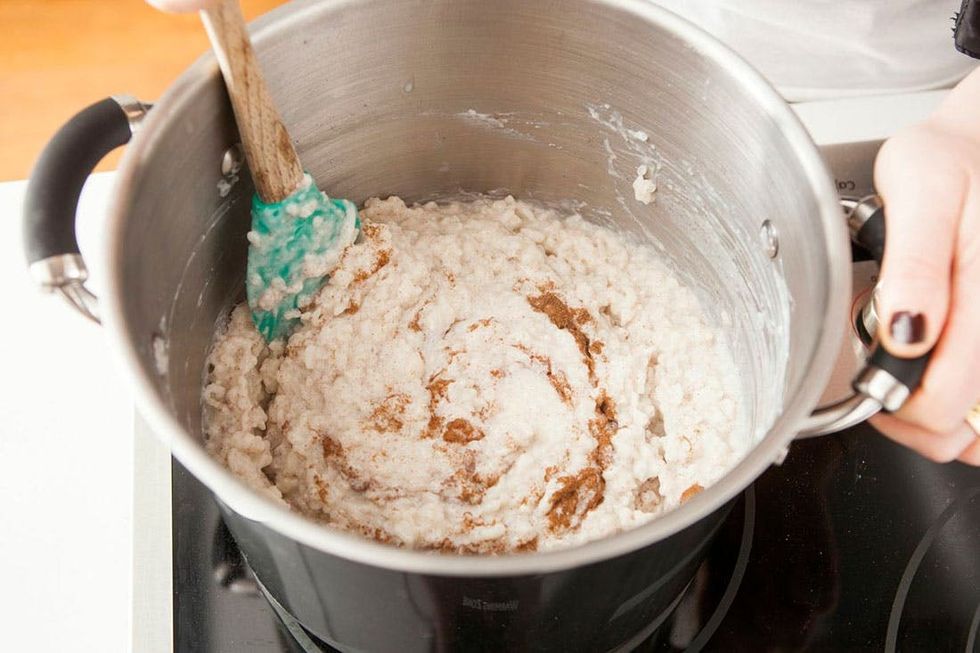 1. In a large saucepan, combine the cooked rice, milk, and sugar. Simmer for 20-25 minutes, stirring occasionally, until rice has absorbed most of the milk.