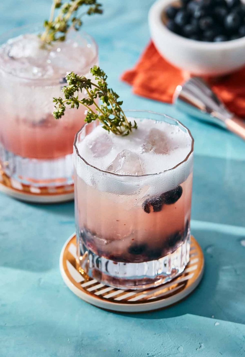 This tall cooler tastes just like blueberry lemonade, but the Champagne and rum really pack a wallop. Garnish with mint and orange slices for a festive presentation. (via Gluten Free With L.B.)
