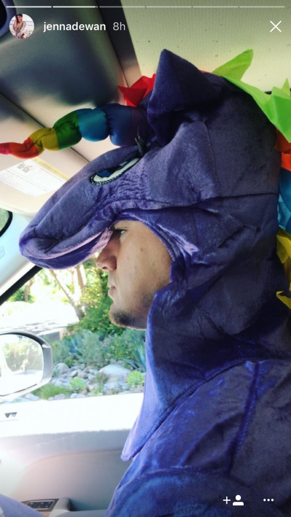 The dancer-turned-actress gave us a better view at her man’s getup via Instagram Stories with an LOL-worthy peek at her man driving (or attempting to!), with his horn and mane barely fitting in the car. It was quite a different spin on the magical sparkle unicorn costume the 36-year-old mama donned herself just last year.