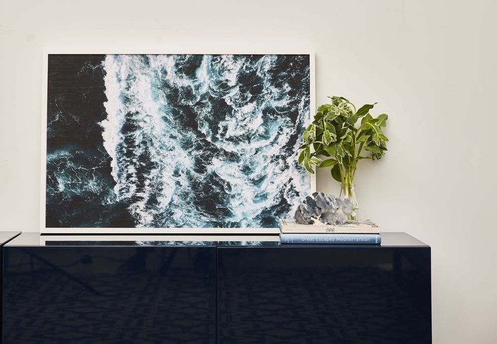 The mix for The Print Shop, which launches November 3, includes photography, graphics, text, and illustrations. Many use a palette of deep, rich, blues, grays, and Rees’ new favorite neutral, blush. And each of the 24 x 36-inch prints runs $95, so you can make space in your budget to get more than just one.