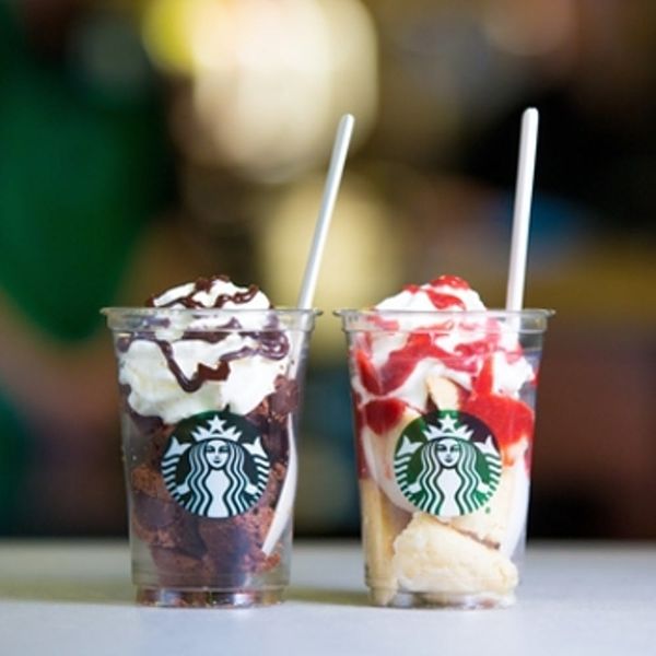 Add a nibble to your order with the Chocolate Brownie Trifles, rich double chocolate brownies topped with whipped cream and a mocha drizzle, or the Strawberry Shortcake Trifles that are sweet Petite Vanilla Bean Scones that are layered with a strawberry drizzle and whipped cream. Totally drool-worthy.
