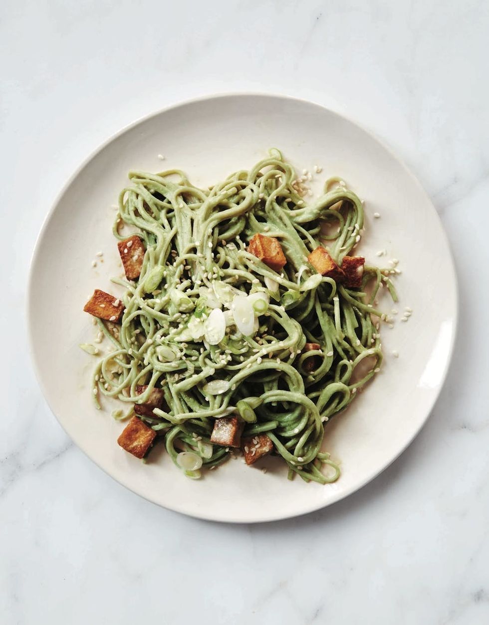 “One of favorite soba noodle dishes is my matcha soba with spicy tofu nuggets recipe from my new cookbook. The sauce is a creamy matcha, but the tofu nuggets are sweet and spicy, which makes for a unique dish that’s both comforting and bold. Fun Fact: When I feel like changing it up, this dish also works great by swapping the soba noodles for edamame noodles, which have a ton of protein. Just remember that soba noodles cook quickly and overcooked noodles lead to mush. I drain the them a minute before the suggested cooking time on the box to add more texture. If I’m not serving or eating the dish right away, I toss the noodles in a bit of oil to avoid them turning into a tangled mess.” — Chloe Coscarelli, vegan chef and author of Chloe Flavor