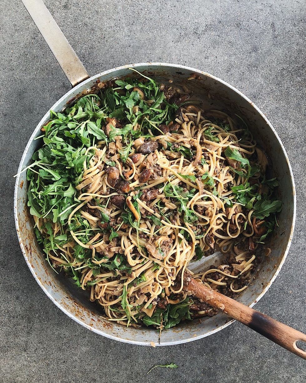 Buckwheat Pasta With Sautéed mushrooms and Arugula
