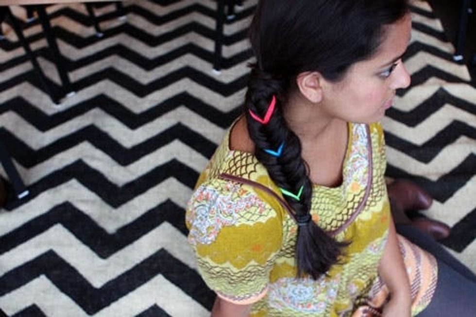 You know we’re obsessing over all things chevron these days, and hair is no exception. But it’s time to start talking and get braiding. Presenting, the Chevneon – a neon twist on the classic fishtail.