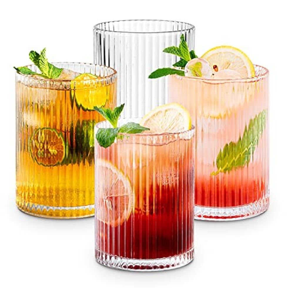 Upgrade your glassware collection with this set of Drinking Glasses. Available in a convenient set of four, you can choose from two different sizes. Whether sipping your morning coffee or indulging in an evening cocktail, these stylish cups add a touch of sophistication to your beverage experience. Elevate your everyday moments with this chic and versatile glassware set.