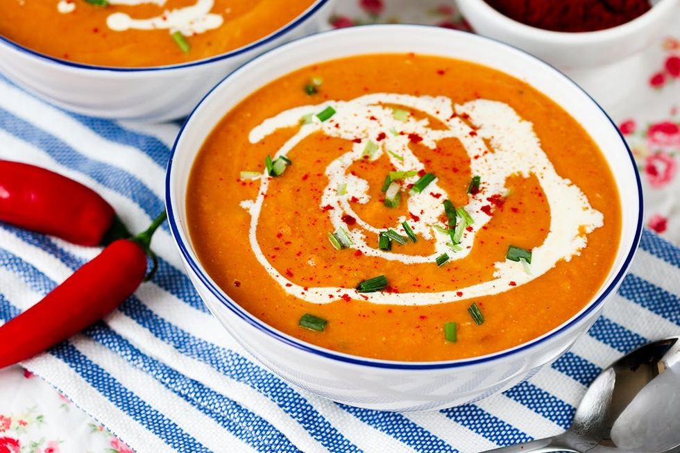 Ladle the soup into four bowls, then top with the scallions, swirl in the cream and sprinkle with smoked paprika.