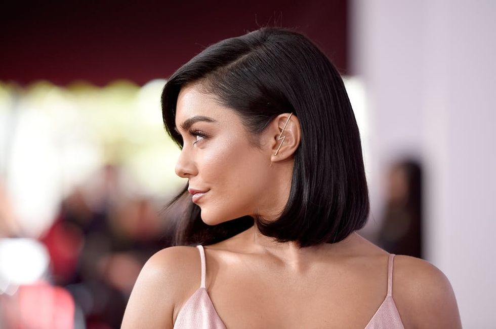 Vanessa Hudgens’ asymmetrical cut falls just below the chin so that, when straight, she has the ultimate ’90s bob, but when curled, it frames the face with a beautiful retro effect. (Photo via Kevork Djansezian/ Getty)