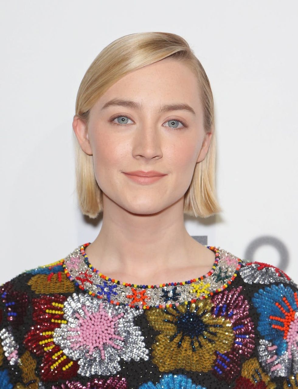“I love a good blunt bob,”Araujo says. “Saoirse Ronan’s is fun because it’s sleek, and the fact that it has no layers, makes it sit perfectly tucked behind her ear.” While the other stylized bobs pride themselves on volume and texture, this smooth style is ideal for fine-haired babes who don’t want to pump their hair full of product. (Photo via Gabe Ginsberg/ Getty)