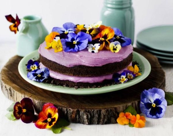 With beauty and braun, this pansy-covered chocolate layer cake would be absolutely precious at a tea party or ladies’ lunch. (via Style Me Pretty)